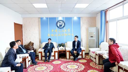 3月26日,调研组与中国石油大学(华东)石油工业训练中心召开“综合实训平台建设”专题研讨会,双方就油气勘探开发虚拟仿真平台建设、管理、教学内容设置等议题深入交换了意见。